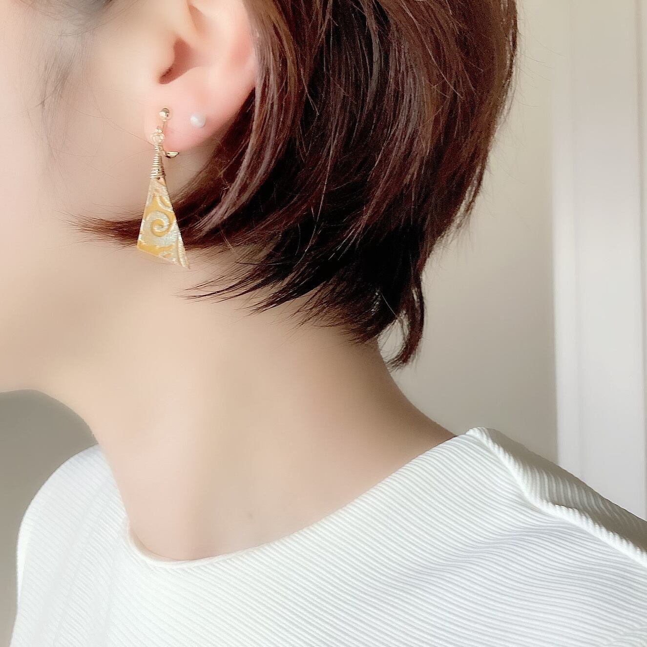 香るイヤリング/ピアス® ボタニカルなトライングル イエロー アロマテラピー