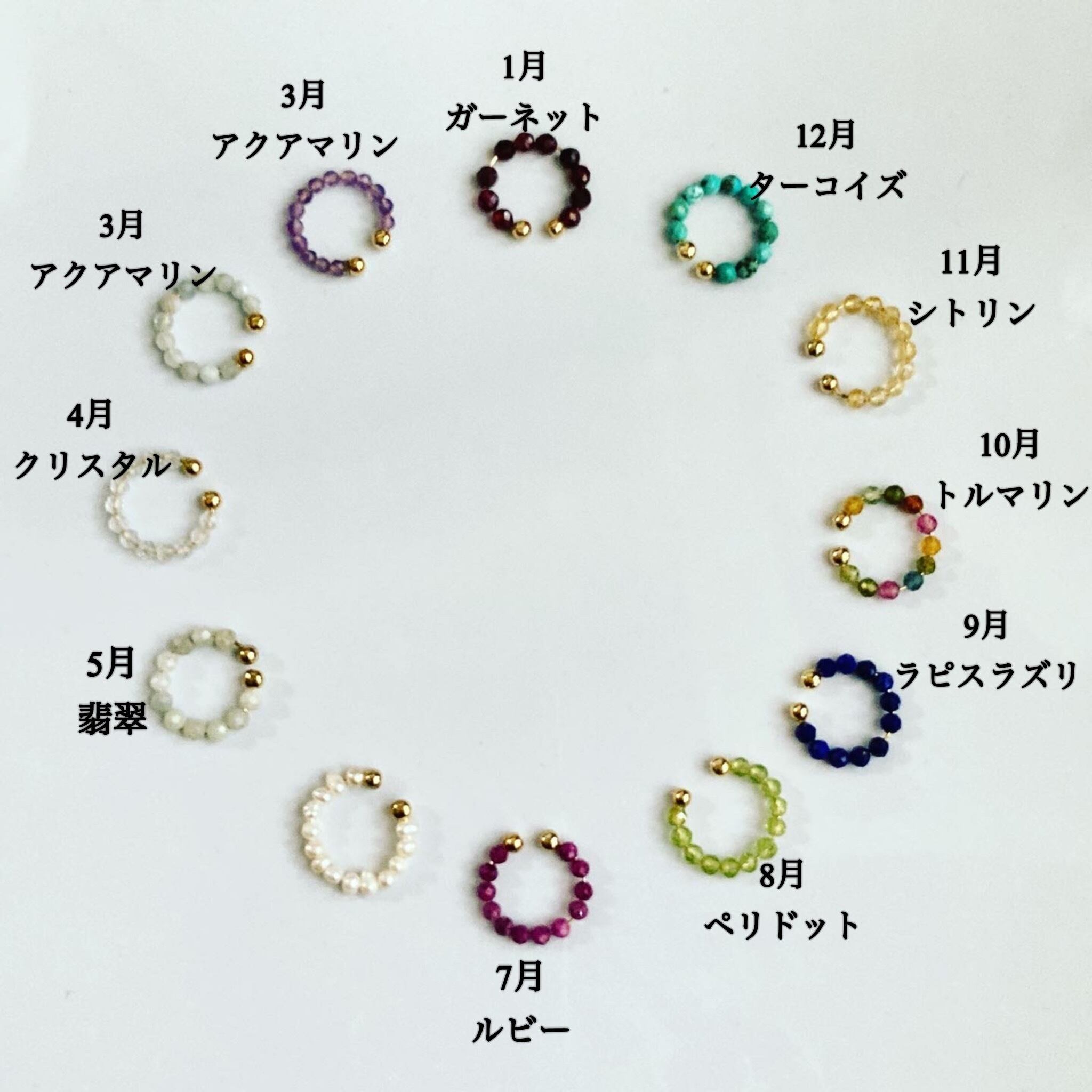 ♡選べる誕生石2点セット♡ お守り天然石イヤーカフ